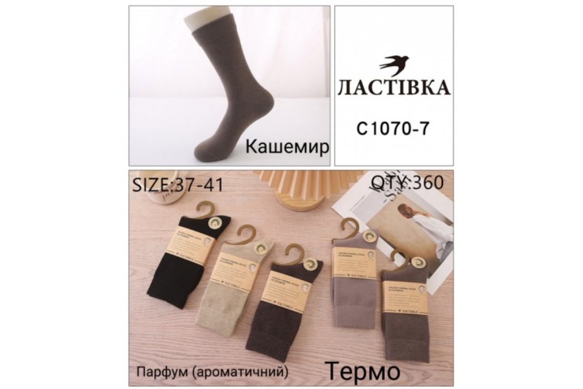 Шкарпетки, жін, високий, Термо, кашемір, Ластівка, 10707, асорті, 3741, 10, шт, уп