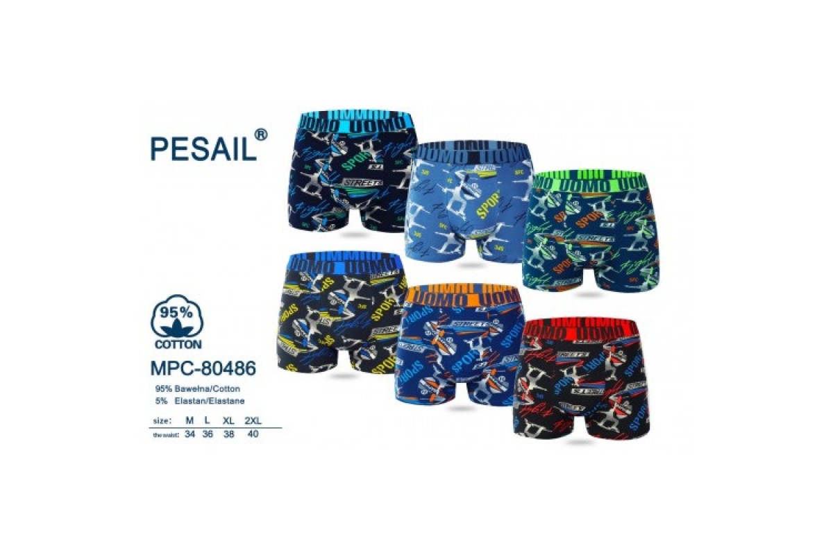 Боксери, чоловічі, PESAIL, 80486, коттон, асорті, М2XL, 12, шт, уп