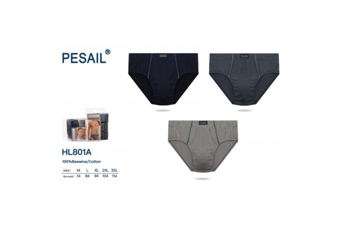Плавки, чоловічі, PESAIL, 801A, котон, асорті, М3XL, 24, шт, уп