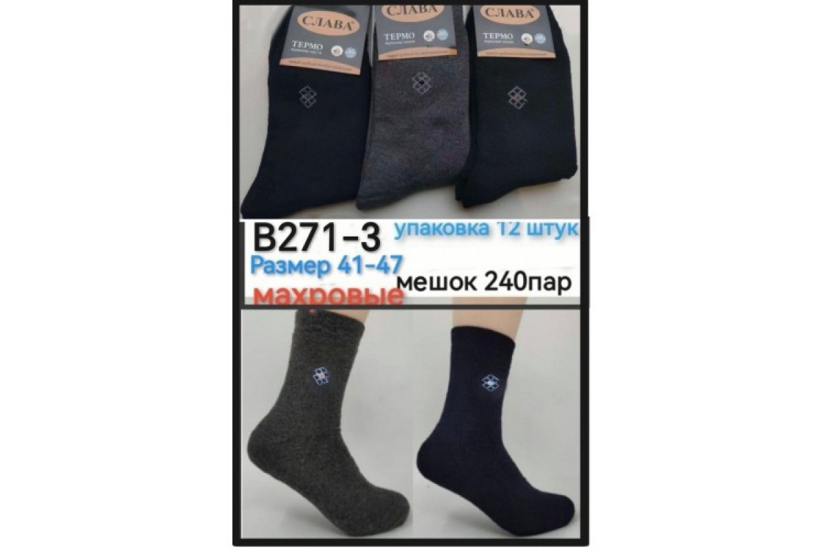 Шкарпетки чоловік. високий ТЕРМО бавовна + махра Слава 271-3 асорті 42-48 (12 шт в уп)