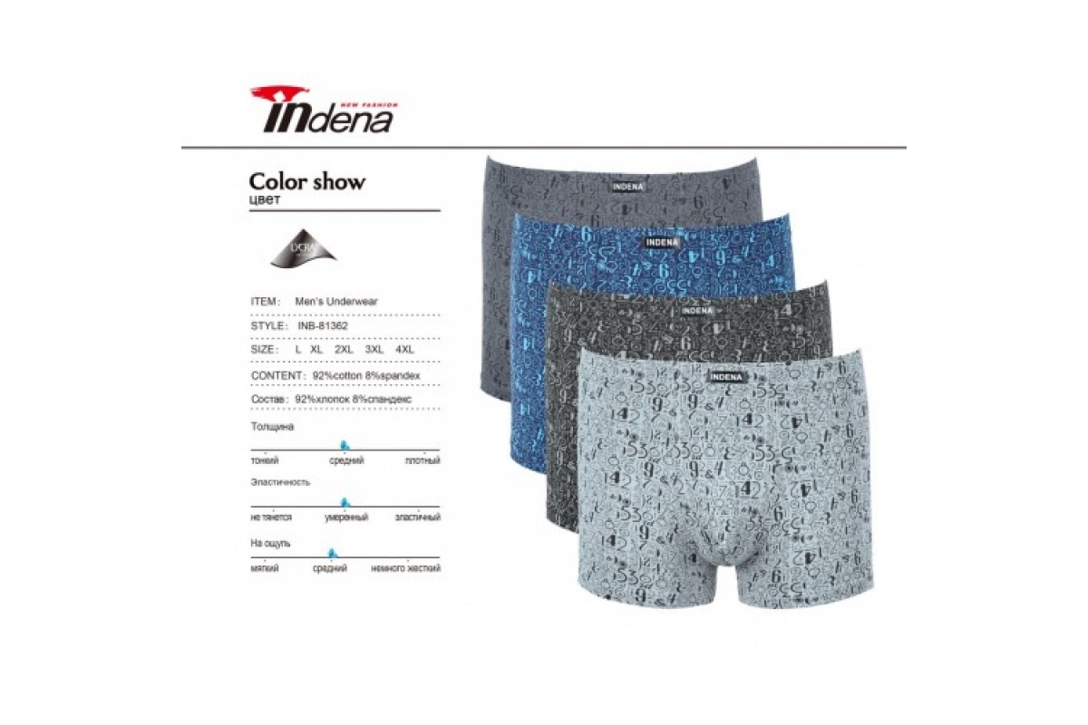 Боксери Індена 81362 Бавовна асорті L-4XL ( 6/12 шт)