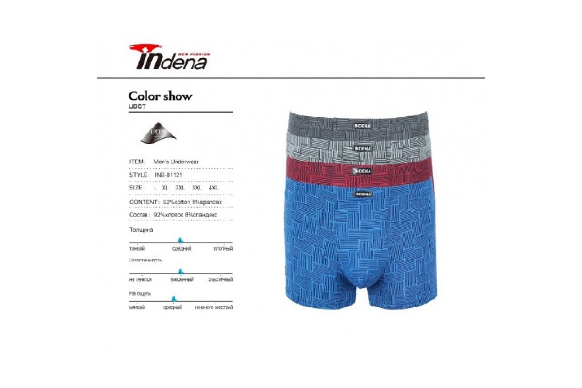 Боксери, Індена, 81121, Бавовна, L4XL, асорті, 6шт