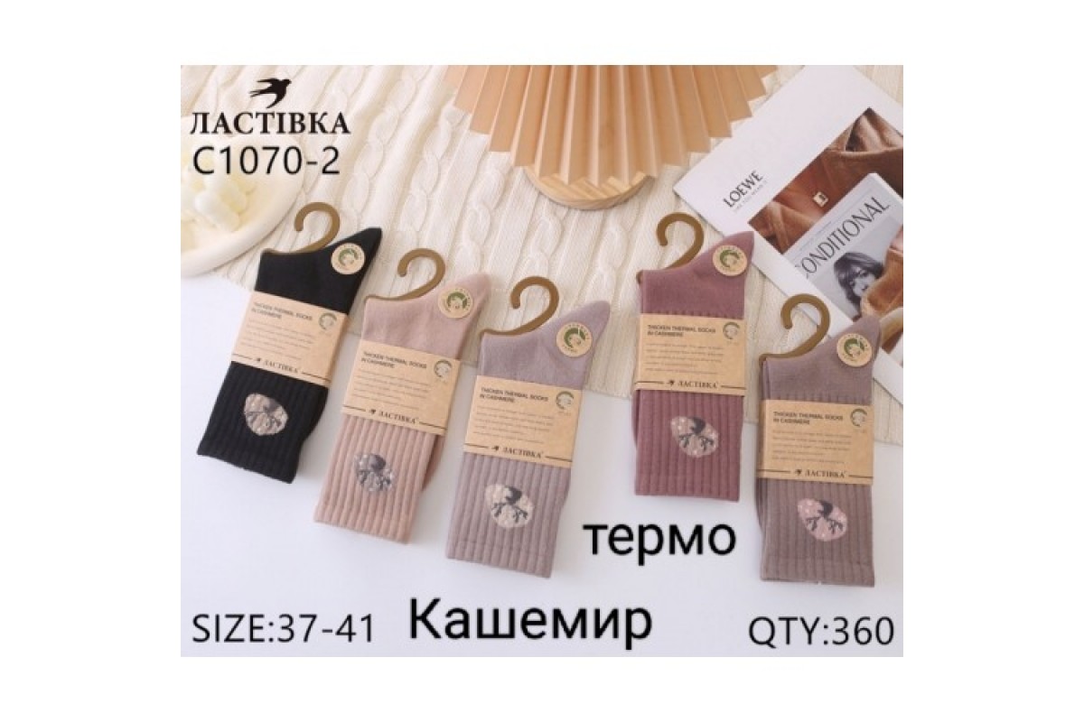 Шкарпетки жін. високі Термо кашемір Ластівка 1070-2 асорті 37-41 (10 шт в уп)