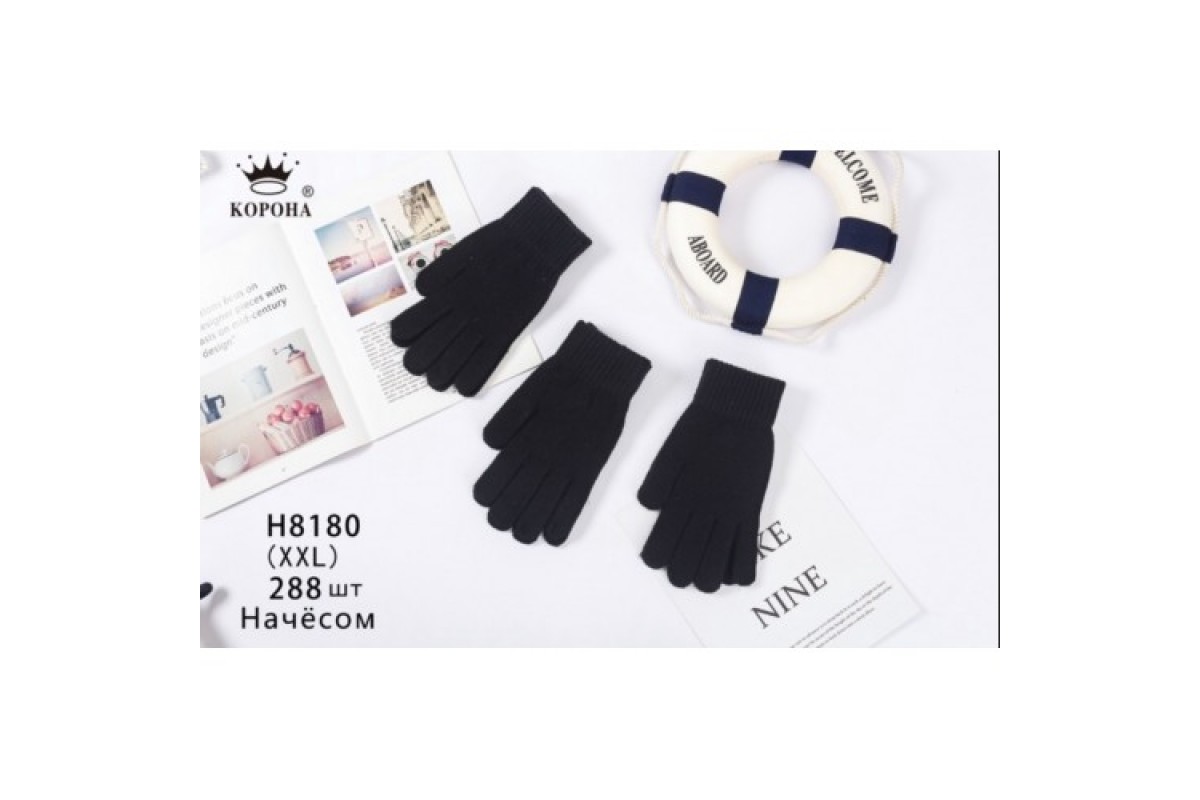 Перчатки, муж, шерсть, Корона, 8180, черные, F, 12, шт, уп